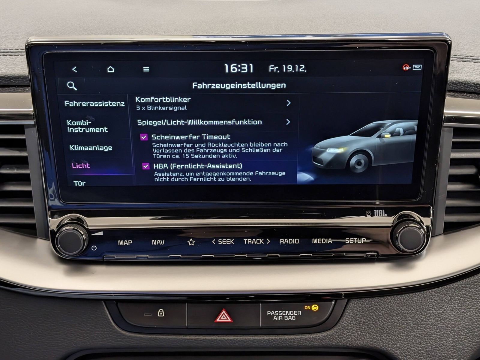 - Fahrassistenz-System: aktiver Spurhalteassistent (LKAS, Lane Keep Assist System)